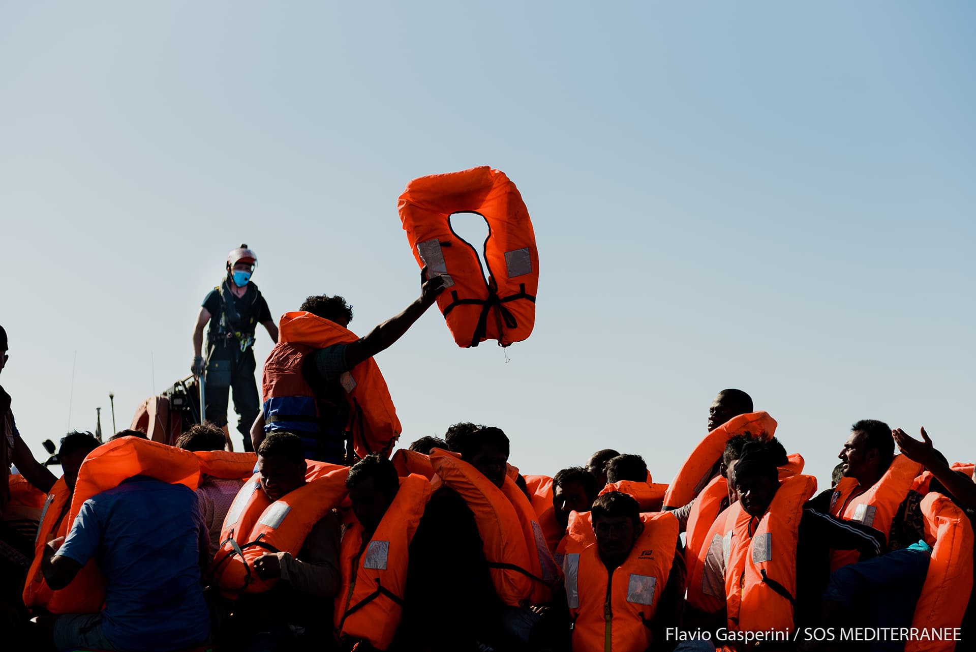 Flavio Gasperini est monté comme photographe à bord de l’Ocean Viking du 25 juin au 22 juillet 2020 lors de sa 9e rotation, qui s’est terminée par la détention arbitraire du navire par les autorités italiennes.