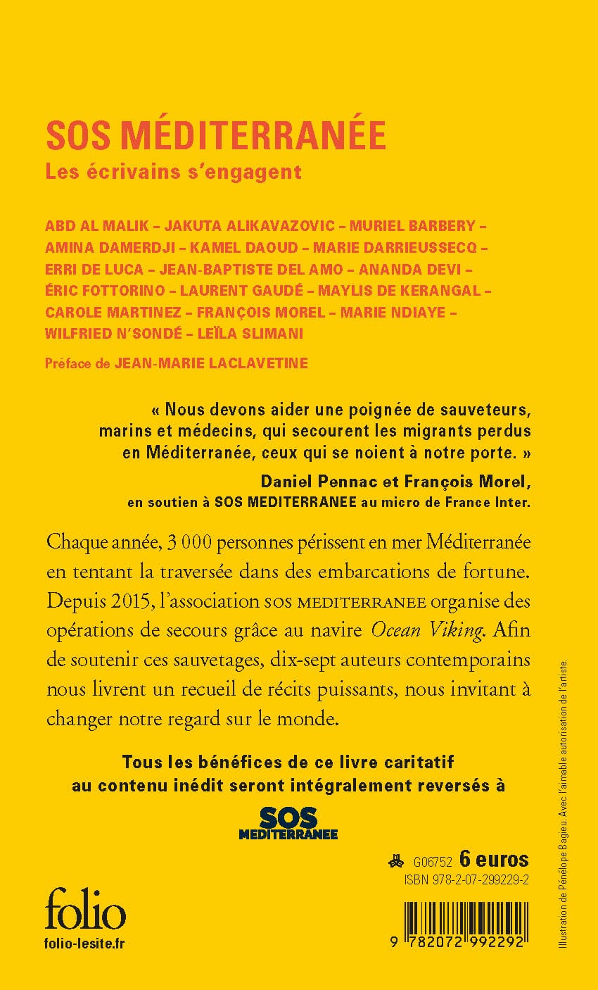 Aujourd’hui, dix-sept écrivain.e.s rendent hommage à cette initiative citoyenne en proposant un recueil de textes inédits paru chez Gallimard dans la collection Folio le 3 novembre 2022 : SOS MEDITERRANEE : les écrivains s’engagent.