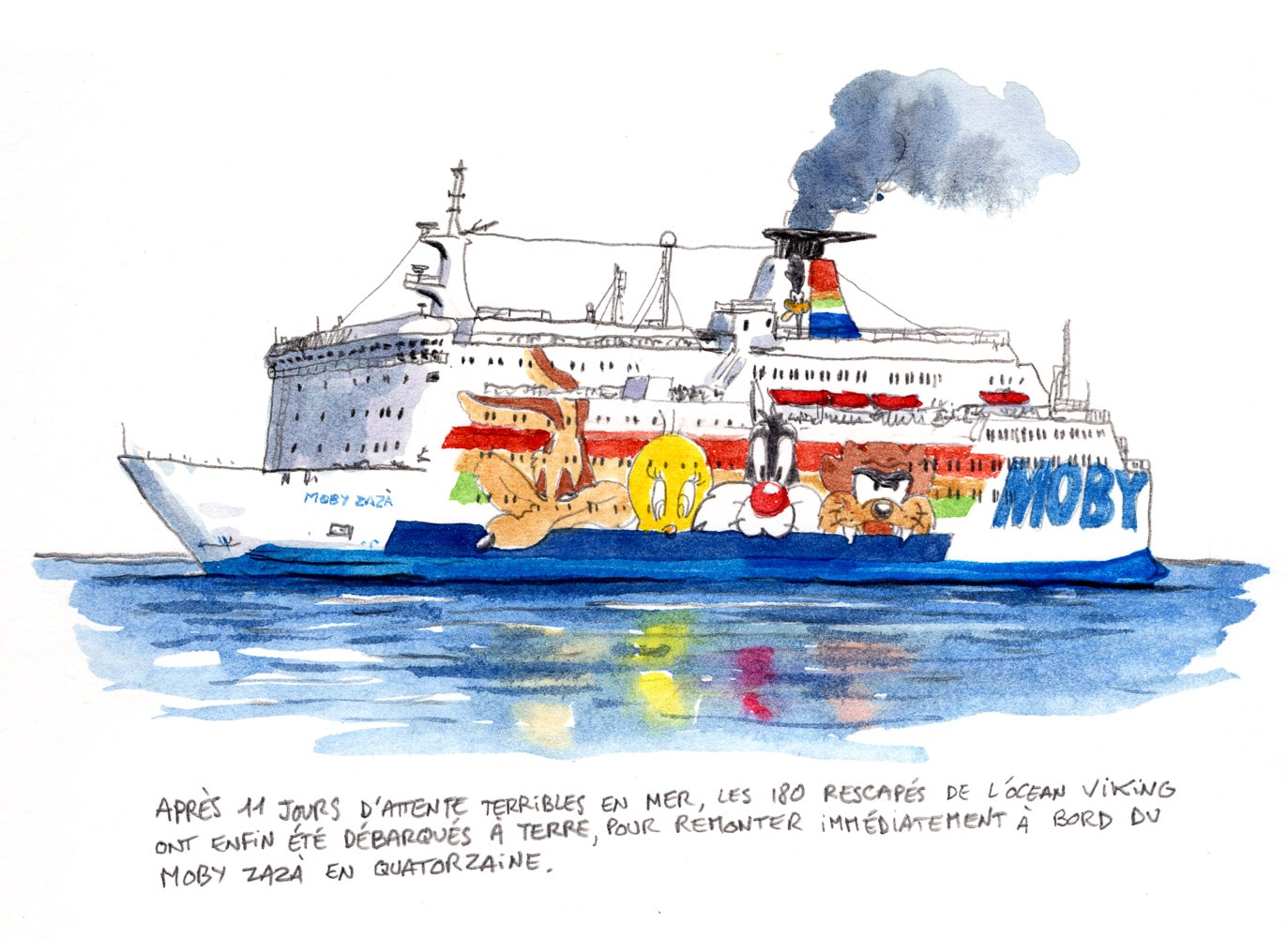 Les rescapés de l’Ocean Viking, traumatisés par leur voyage et l’interminable attente pour être enfin débarqués, ont été placés illico presto sur un nouveau navire au mouillage en Sicile, un ferry, le Moby Zazà.