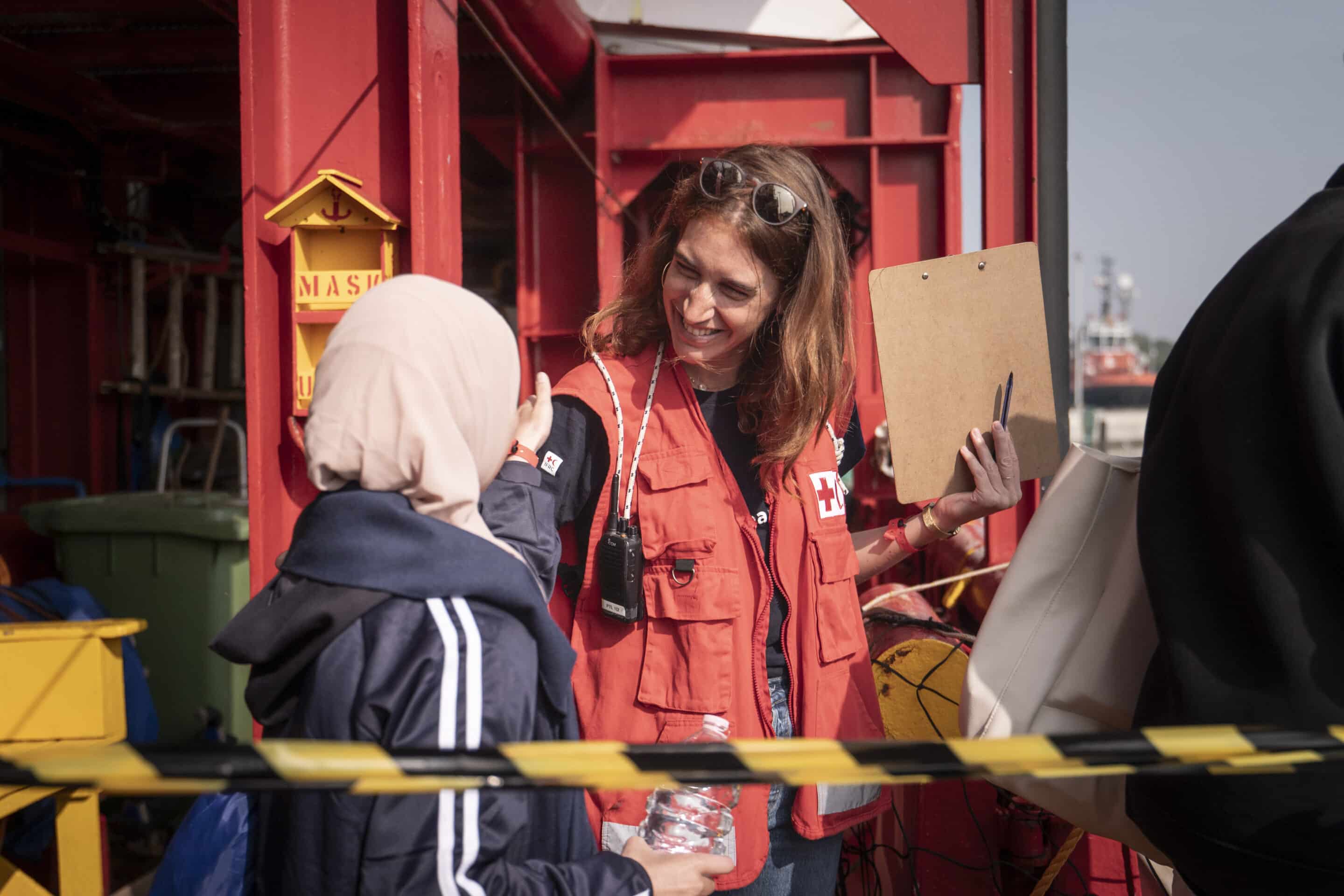 Je suis responsable de toutes les activités de protection, à commencer par l’enregistrement des personnes rescapées lorsqu’elles arrivent à bord. Je leur transmets les informations vraiment cruciales sur leurs droits, par exemple celles concernant la protection à laquelle elles ont droit en Italie, et ce qui se passera lorsqu’elles débarqueront.