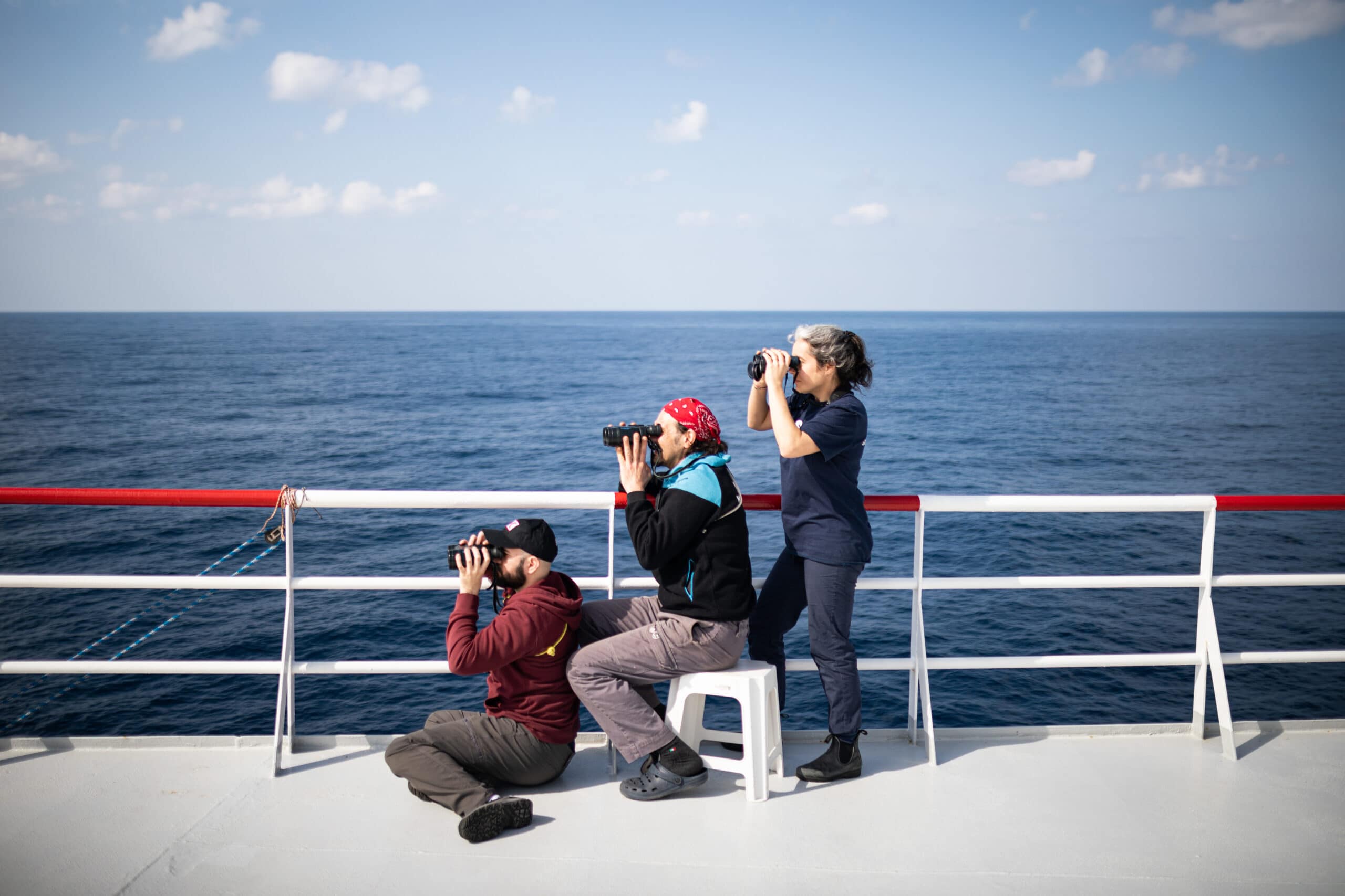 Tard dans la nuit du 26 avril, l’Ocean Viking a effectué un sauvetage éprouvant de 72 personnes à bord d’une embarcation pneumatique en détresse repérée dans l’obscurité totale, avec des vagues d’environ 3 mètres. Ce bateau a pu être retrouvé à la suite d’une alerte de détresse envoyée par le réseau civil Alarm Phone. Quelques heures plus tard, au petit matin du 27 avril, l’équipe de sauvetage de SOS MEDITERRANEE a repéré une quatrième embarcation pneumatique en détresse lors d’une observation aux jumelles. 59 autres personnes ont été secourues.