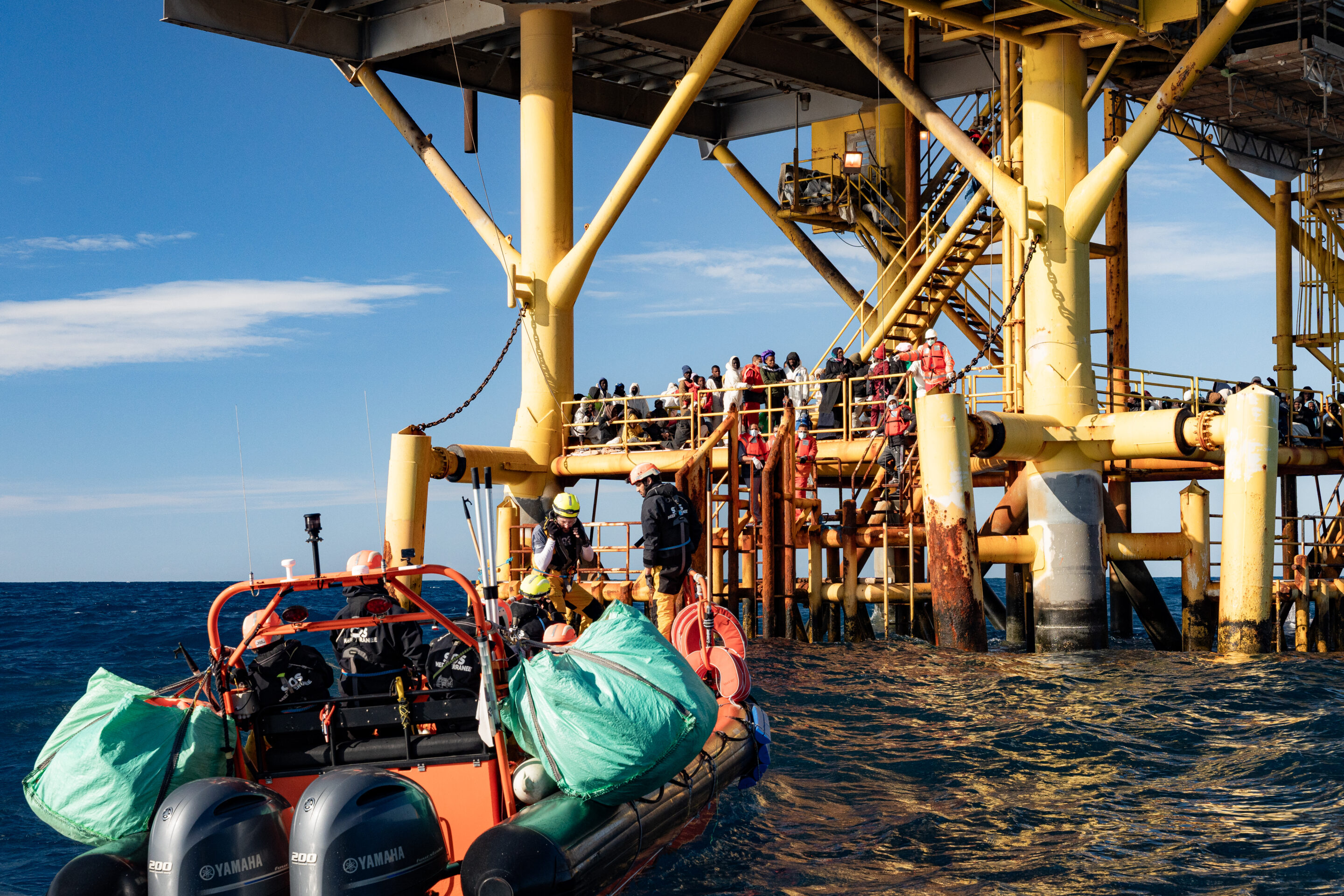 Hier, l’équipe de l’Ocean Viking a porté secours à 116 personnes qui venaient de passer quatre nuits sur la plateforme gazière Miskar, dans la zone de recherche et de sauvetage tunisienne.