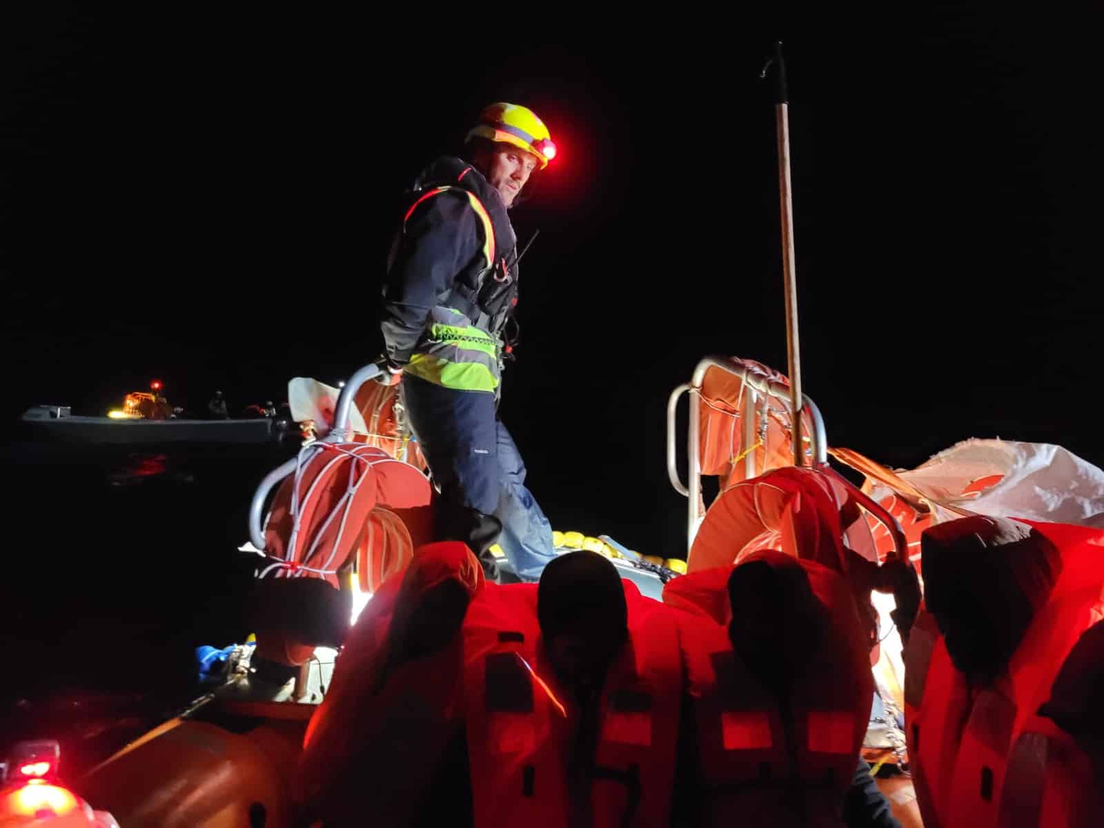 Dans la nuit du 21 avril 2023, l’équipe à bord de l’Ocean Viking a secouru 29 personnes dans l’obscurité et par mauvais temps d’une embarcation en fibre de verre impropre à la navigation, en détresse en mer depuis 5 jours.